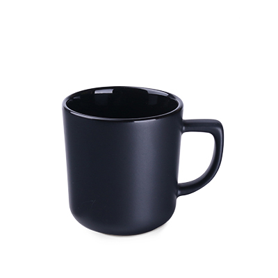 Forme moderne, dans une texture extérieure en Noir Mat, du mug le plus populaire avec sa grande surface de marquage. L'intérieur du mug décliné en six couleurs brillantes peut être un complément parfait à la palette existante de couleurs d'une marque.