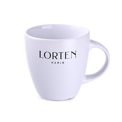 A matte mug with a popular shape. There may be minor dots on the glaze of the mugs.