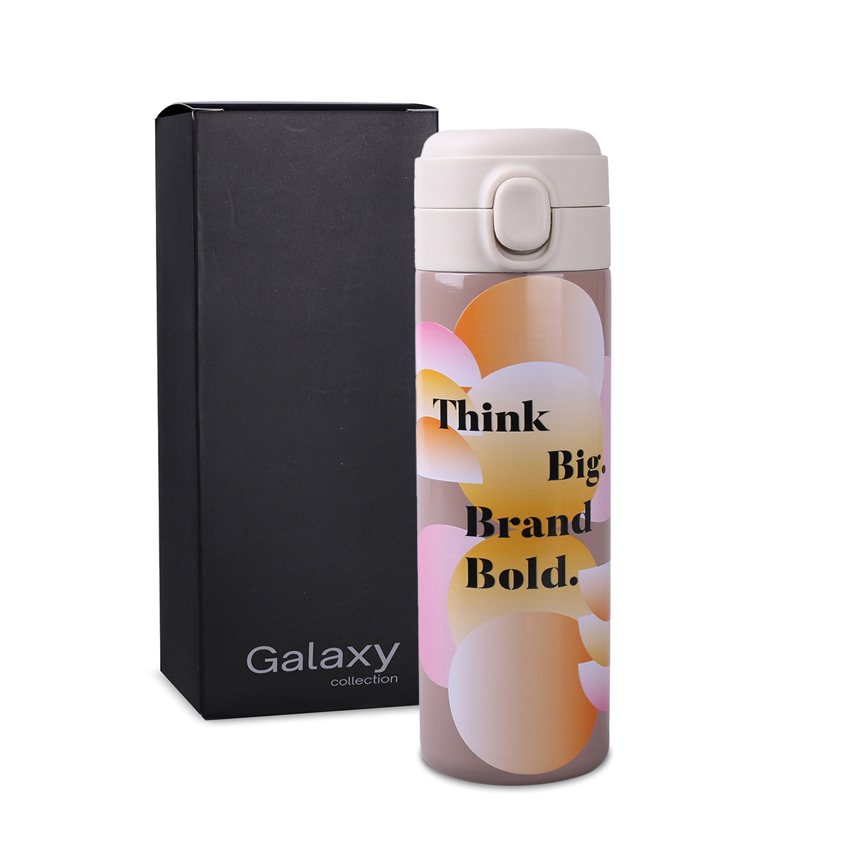 Vous êtes à la recherche d’un cadeau promotionnel efficace? Grâce à son isolation sous vide et à son ouverture facile en „1 clic”, Orion offre le plaisir de boire et la commodité au plus haut niveau. La décoration Galaxy Color permet de colorer le corps dans n’importe quelle couleur Pantone, ce qui permet de préparer un message marketing efficace. Le contenant isotherme Le mug thermique Orion est vendu dans un emballage standard.