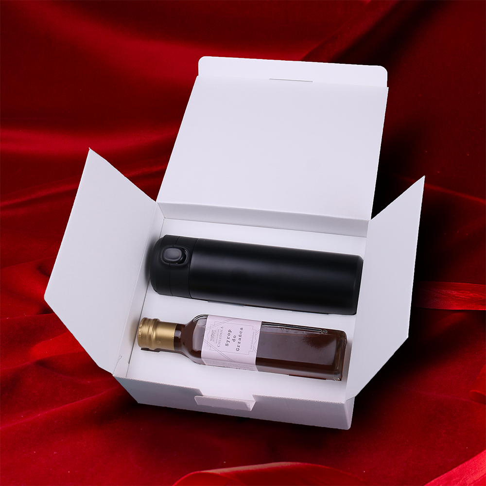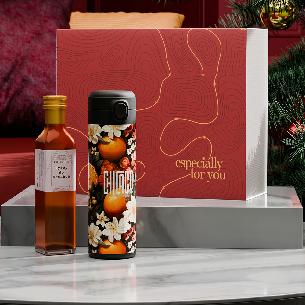 Un ensemble réconfortant parfait pour vos escapades – composé du mug isotherme Orion, idéal pour des décorations raffinées, et d’un sirop façon vin chaud riche en épices aromatiques, pour sublimer le goût du thé, du café, du vin rouge ou des desserts. Le tout est emballé dans un emballage écologique dédié Snowy, accompagné d’une élégante bande personnalisée. LA DÉCORATION PRÉSENTÉE EST UNIQUEMENT À TITRE INDICATIF ET N'EST PAS INCLUSE DANS LE PRIX DU PRODUIT. ENSEMBLE DANS UN EMBALLAGE DÉDIÉ SNOWY AVEC DÉCORATION CHOISIE.
