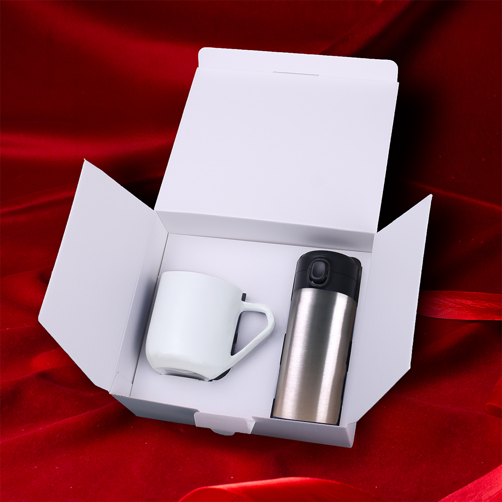 Parfait pour toute aventure - un mug isotherme Vega personnalisé associé à un impressionnant mug en porcelaine Impress. L'ensemble est présenté dans un emballage écologique Snowy avec une bande personnalisée. LA DÉCORATION PRÉSENTÉE EST UNIQUEMENT À TITRE INDICATIF ET N'EST PAS INCLUSE DANS LE PRIX DU PRODUIT. ENSEMBLE DANS UN EMBALLAGE DÉDIÉ SNOWY AVEC DÉCORATION CHOISIE.